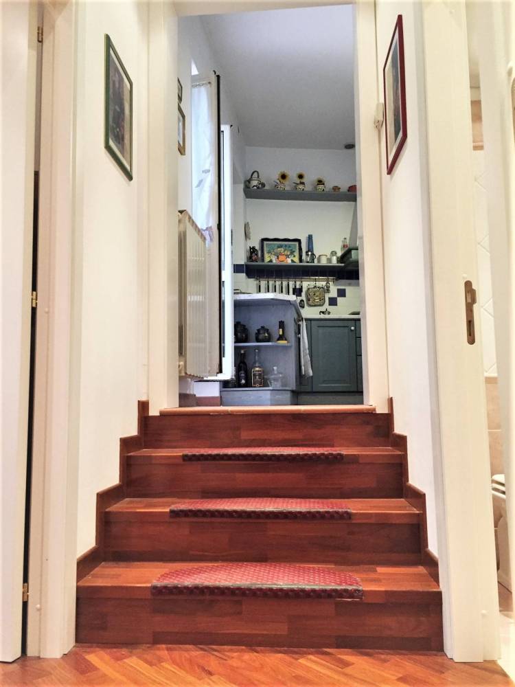 Piccolo appartamento in centro a Fabriano proposto in vendita dall'Agenzia Immobiliare Ninno, sito in condominio da quattro appartamenti al secondo e ultimo piano. Ambiente accogliente già dall'ingresso con cucina completa di caminetto e affaccio sul terrazzo esclusivo. Tre gradini conducono al salotto, alla camera matrimoniale e al grazioso bagno con doccia. Il terrazzo ha una bella panoramica sui tetti circostanti ed una buona esposizione. Al piano sottostrada dispone di una cantina in grotta molto rifinita con mattoni a vista. Ottime finiture unite a grande vivibilità e privacy. Zona Pisana, servita di negozi e parcheggi e ben collegata a tutti i punti cittadini. È in vendita anche l'appartamento adiacente sullo stesso pianerottolo, che si può prendere in considerazione come doppia residenza o per unire le due unità per realizzarne una più ampia, per maggior chiarezza consigliamo di visionare il codice annuncio A084 del nostro sito ninnoimmobiliare.it