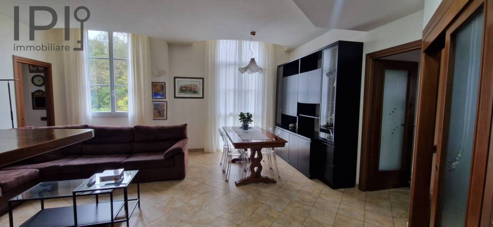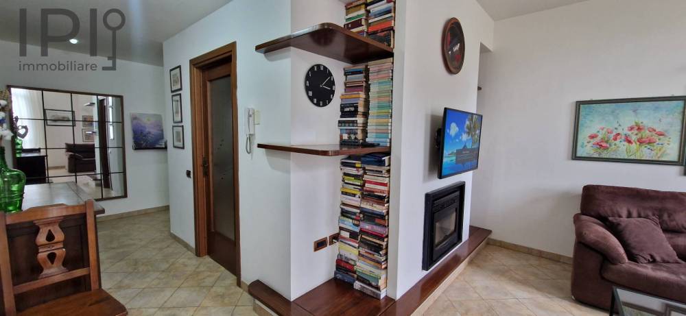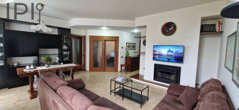 Posto al secondo piano con ascensore, ci accoglie con un ampio ingresso che rimanda alla spaziosa ed accogliente zona giorno con bellissimo caminetto ed ampie superfici finestrate; il cartongesso ai soffitti, che ospita anche parte dell' impianto di illuminazione, crea un atmosfera calda, ospitale e non banale. Dalla zona living si accede alla cucina abitabile con balcone e ad un angolo studio separato da porte scorrevoli in legno e vetro decorato. La zona notte comprende 3 camere da letto di cui, la matrimoniale, con balcone, oltre a bagno con doccia. A disposizione anche un secondo ampio bagno con antibagno e vasca idromassaggio. Lo spazioso angolo dispensa è completato da un locale lavanderia. Completano la proprietà un garage ed una cantina.