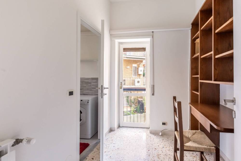 Via dei Colli Portuensi In tranquillo comprensorio con spazi verdi, proponiamo in locazione un appartamento di circa 100 mq al secondo piano, molto luminoso e in ottime condizioni. Limmobile si apre su un ampio ingresso con comodo ripostiglio guardaroba, un soggiorno con accesso a un piacevole terrazzino con affaccio interno, ideale per mangiare allaperto, una cucina con affaccio su un terrazzino di servizio, due camere matrimoniali, un bagno con finestra e uno studio con bagno en suite. Lappartamento viene locato arredato, così come si vede nelle fotografie. Completa la proprietà un box auto di ampie dimensioni situato nellautorimessa adiacente al palazzo. La zona è ben servita da scuole, supermercati, negozi di quartiere e mezzi pubblici. Il tram n. 8, che collega direttamente con Piazza Venezia, si trova a circa 10 minuti di cammino, mentre lOspedale San Camillo-Forlanini è raggiungibile in circa 15 minuti. CONTRATTO TRANSITORIO MASSIMO 18 MESI