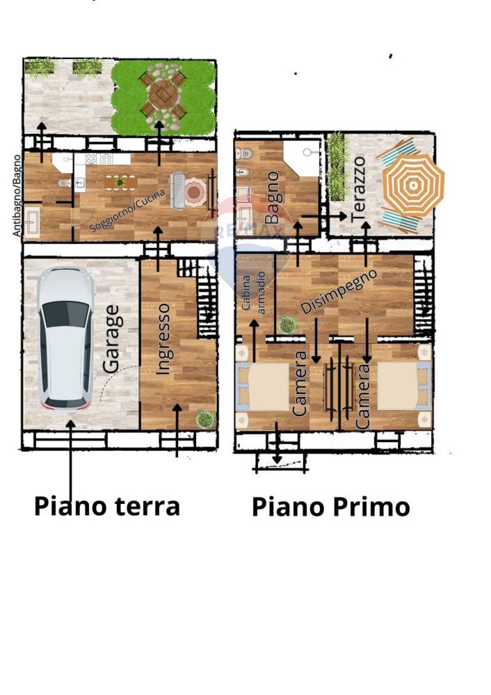 Piano terra: ingresso, soggiorno con cucina open space, bagno e garage.