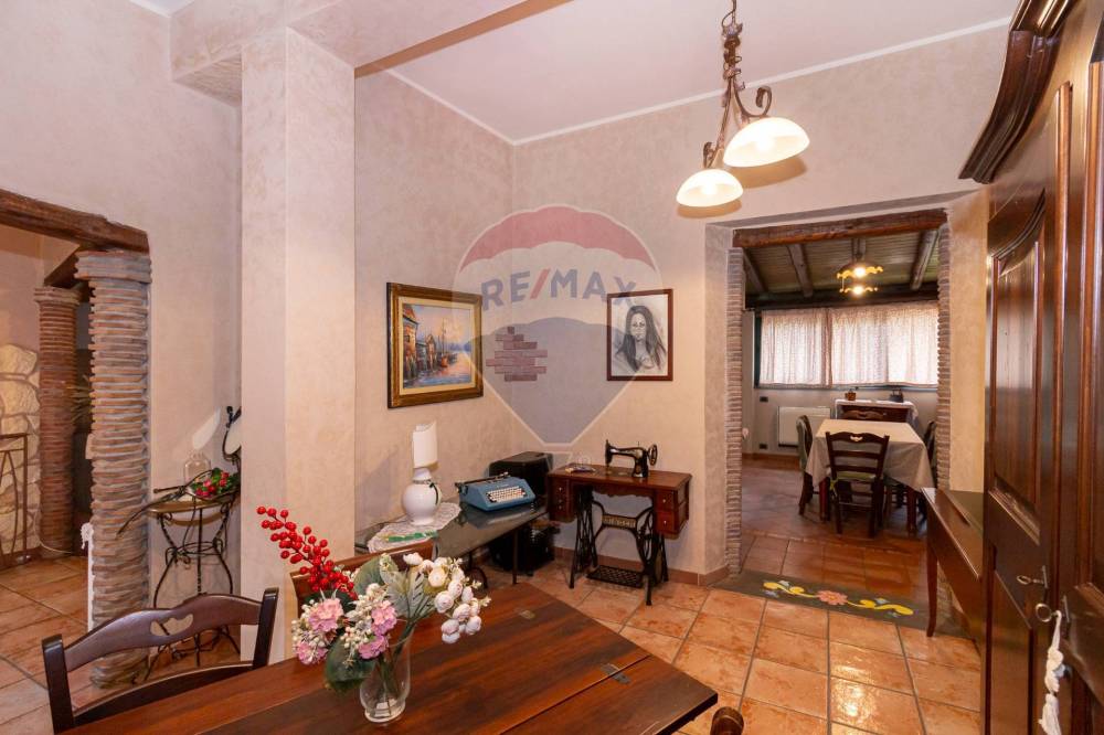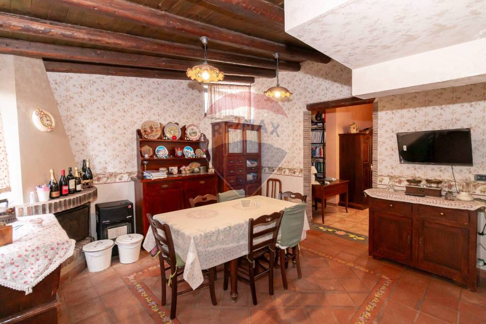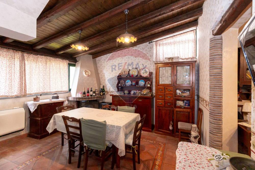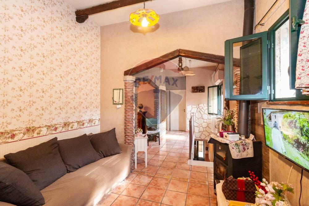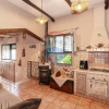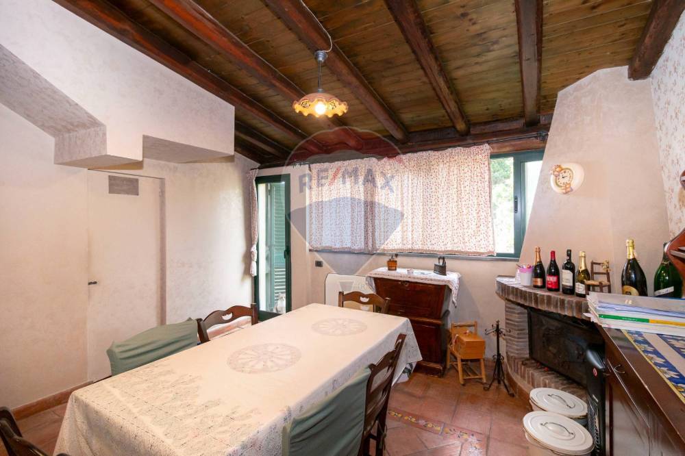 Ingresso su ampia cucina in muratura open space con salone dotato di camino, termoconvettore e climatizzatore.