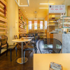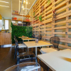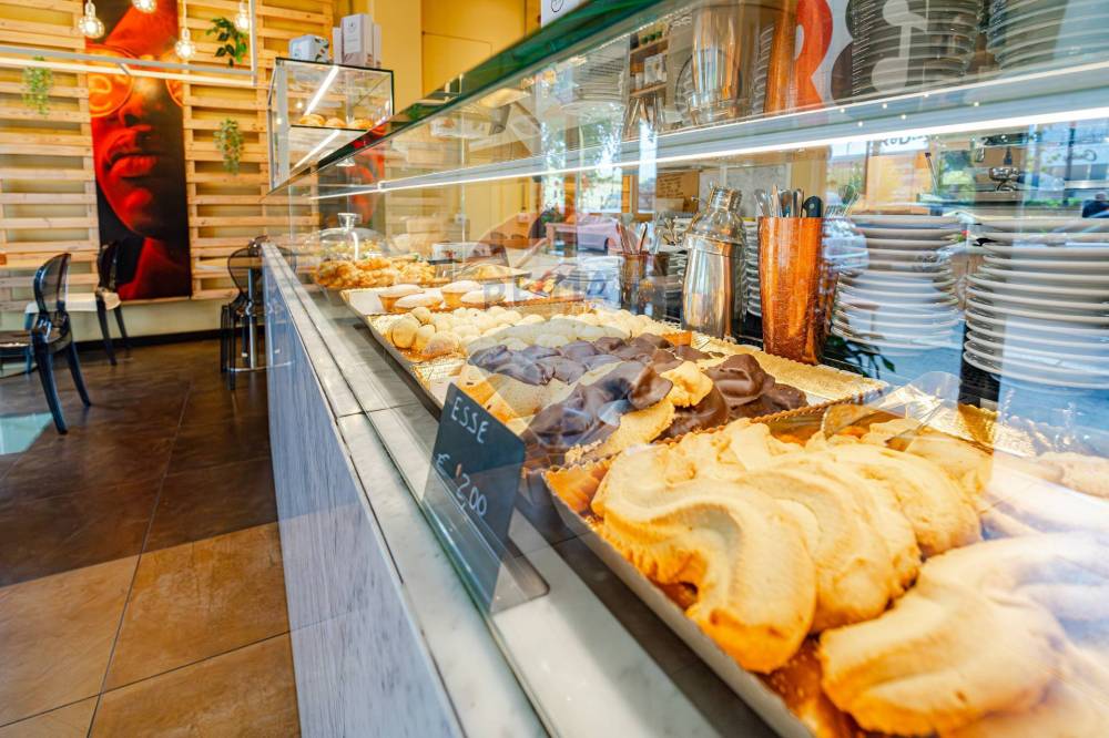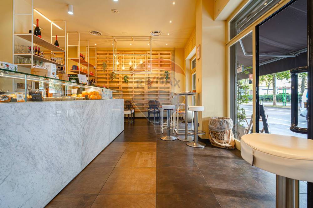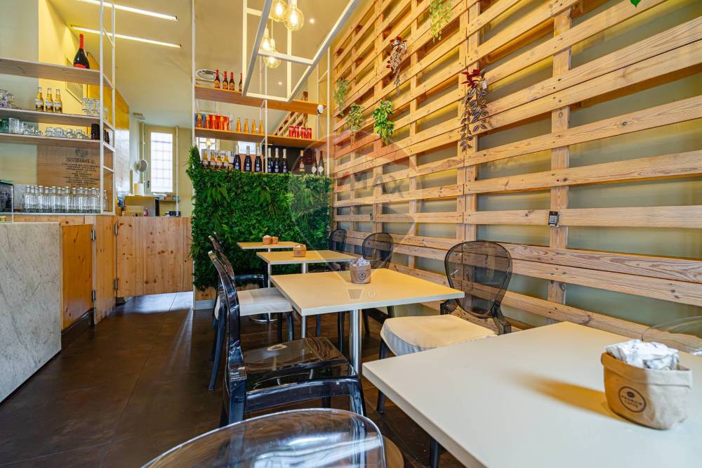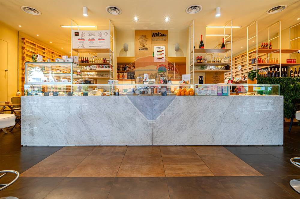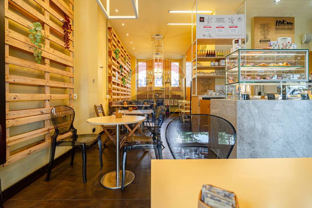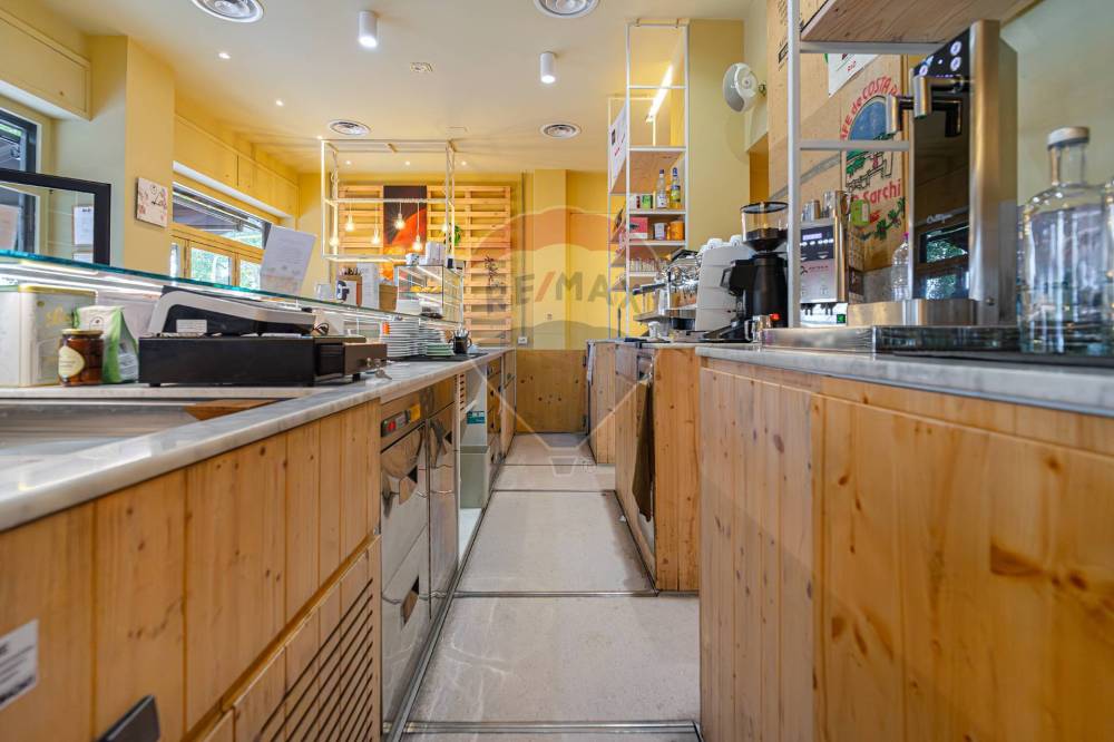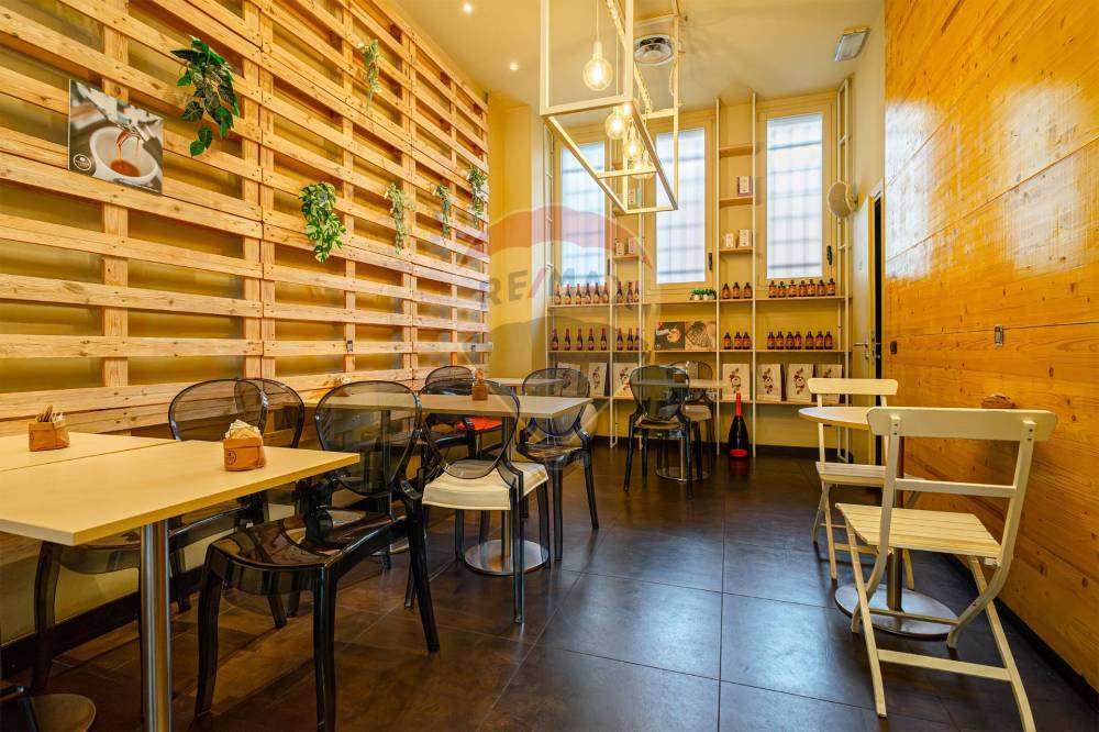 Gli spazi interni sono così composti: ingresso, ampio locale unico con  bancone posizionato al centro e  zona tavoli con 45 posti, spazio adibito a laboratorio ovvero zona preparazione, antibagno con lavandino, bagno disabili, spogliatoio finestrato, secondo bagno e due cantine al piano S1.