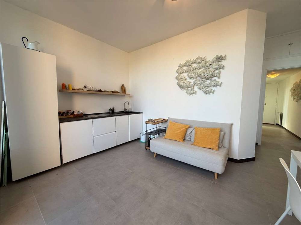 L'appartamento, ideale come seconda casa al mare, offre spazi contenuti ma ben organizzati: un soggiorno con angolo cottura, zona pranzo e salotto affacciato su un ampio balcone vivibile, una camera matrimoniale con bagno privato, un bagno per gli ospiti e una stanza jolly da utilizzare come studio o seconda cameretta.