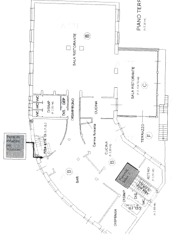 L'immobile si sviluppa su due piani fuori terra più seminterrato, con una superficie commerciale complessiva di 954 mq. Al piano terreno si trovano una sala bar, dispensa, cella frigorifera, cucina con vano mensa, due ampie sale ristorante, un terrazzo e quattro servizi igienici. Al piano primo sono presenti due camere ciascuna con il proprio bagno privato. Il piano seminterrato ospita una cantina, un locale di sgombero, due depositi e un porticato.