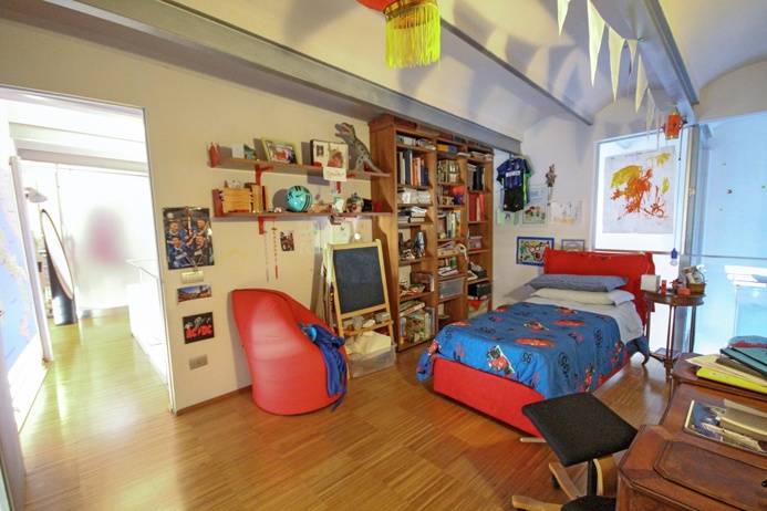 La proprietà è internamente composta da ingresso con accesso indipendente al piano terreno, grande disimpegno con sala da pranzo, bagno giorno, ampia cucina open space e cabina armadio in vetro acidato, enorme soggiorno di mq 110 dotato di 3 grandi porte finestre ad arco con accesso alla terrazza ed altezze interne di metri 4.