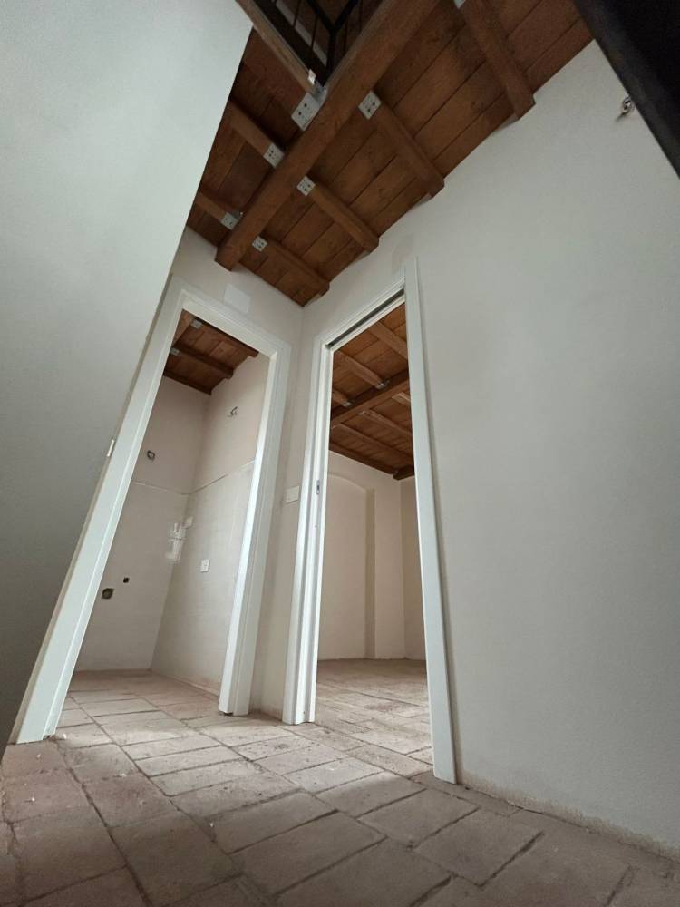 In antico complesso residenziale completamente ristrutturato, caratteristica casa semindipendente disposta su 2 livelli di abitazione così composta: al piano terra il soggiorno con angolo cottura e ripostiglio/lavanderia, accesso diretto al giardino di proprietà di mq. 105, al P.1° si trova la zona notte con camera matrimoniale, bagno oltre a soppalco di mq.30. Ottime rifiniture, totale recupero delle travi a vista e dei pavimenti in cotto risalenti al 1860. Termoautonomo, Impianto fotovoltaico.