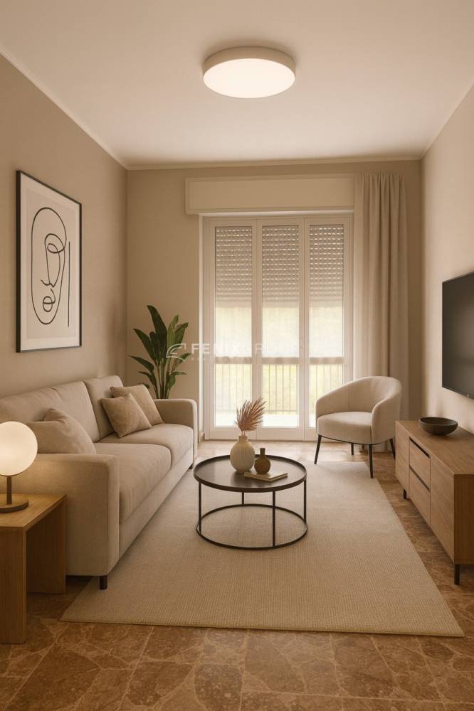 L’ingresso si apre su un soggiorno ampio e luminoso, con cucina a vista, pensato per creare un ambiente conviviale e accogliente. La zona giorno si affaccia su due balconi paralleli che garantiscono una buona esposizione e una gradevole luce naturale durante tutto l’arco della giornata. La disposizione interna prosegue con due camere da letto ben proporzionate e un bagno finestrato anch'esso completamente ristrutturato.