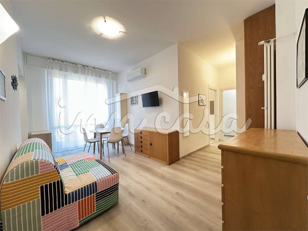 In esclusiva proponiamo ai clienti che desiderano la vista mare un bilocale in vendita a Rimini in zona Lagomaggio. A due passi dalla spiaggia e con tutti i servizi disponibili in ogni stagione, l'appartamento è al sesto ed ultimo piano con ascensore, ha una superficie di 45 metri quadri, è stato ristrutturato internamente, viene venduto completo degli arredi presenti e ha l'inconfondibile fascino speciale della vista mare. Soggiorno con cucina a vista e balcone, camera da letto, bagno. Impianto di aria condizionata, infissi e pavimenti nuovi. Nel cortile condominiale è presente uno spazio comune per bicilette e motorini. Il Parco del Mare è proprio sotto casa, una concezione di waterfront con i nuovi spazi urbani costieri riqualificati e sostenibili, aree verdi, piste ciclabili e aree per attività fisica outdoor. La richiesta ammonta ad Euro 248.000. Riferimento Annuncio V02748