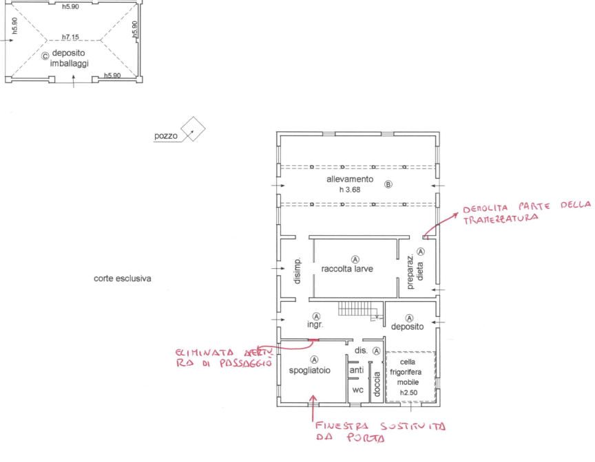 Capannone sito in Via Paradosso, nel Comune di Bagnacavallo (RA), all'interno di un fondo agricolo composto da due appezzamenti di terreno a destinazione seminativa per una superficie complessiva di 15.482 mq. Il compendio comprende un edificio rurale con funzione strumentale all'attività agricola, un capannone destinato a deposito imballaggi, un piccolo fabbricato accessorio dotato di forno in muratura, loggia e due locali ad uso sgombero, oltre a corte esclusiva pertinente agli edifici. L'immobile è situato in una posizione strategica, facilmente accessibile e ben collegata, ideale per attività agricole con necessità di spazi di deposito e operativi.