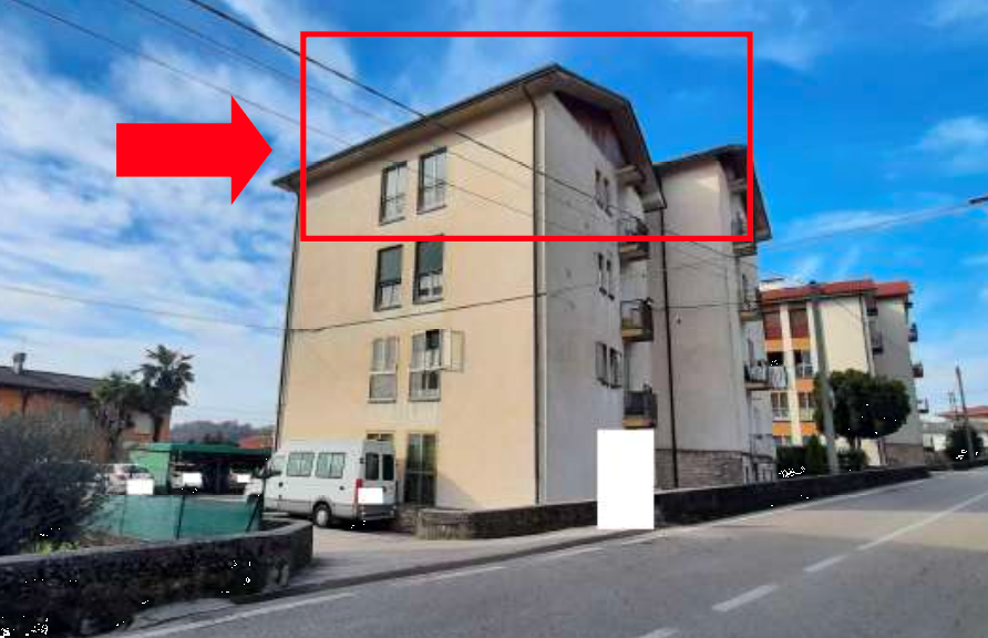 Appartamento al piano quarto con annessa cantina e autorimessa al piano terra situato a Lugo di Vicenza (VI) in via Don G. Minzoni, composto da ingresso, soggiorno, una cucina, disimpegno, tre camere da letto, un bagno, ripostiglio, due terrazze.