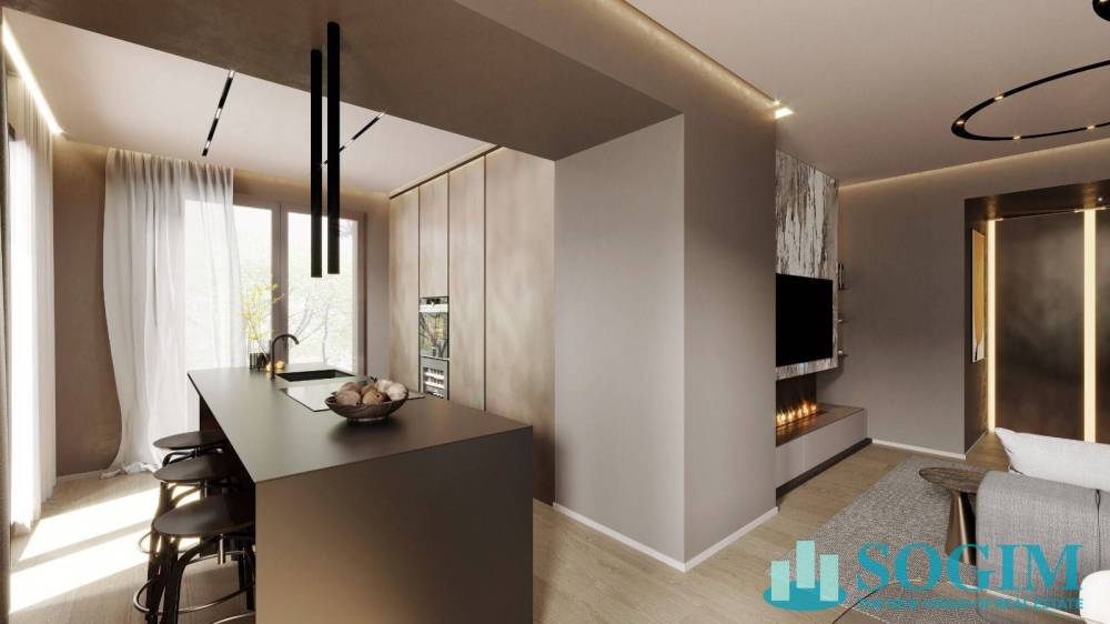 Proponiamo appartamento in vendita situato al piano secondo, così composto: ingresso, soggiorno ampio con ampia cucina a vista con isola, camera matrimoniale con cabina armadio, seconda camera matrimoniale con cabina armadio e bagno en suite, zona lavanderia ampia e due bagni. Limmobile gode inoltre della presenza di un ampio terrazzo con esposizione a sud. Servizio di portineria. Completa la soluzione, al piano interrato, un box doppio in lunghezza e la cantina, una SPA e una Palestra progettate ad uso esclusivo dei residenti del complesso residenziale.
