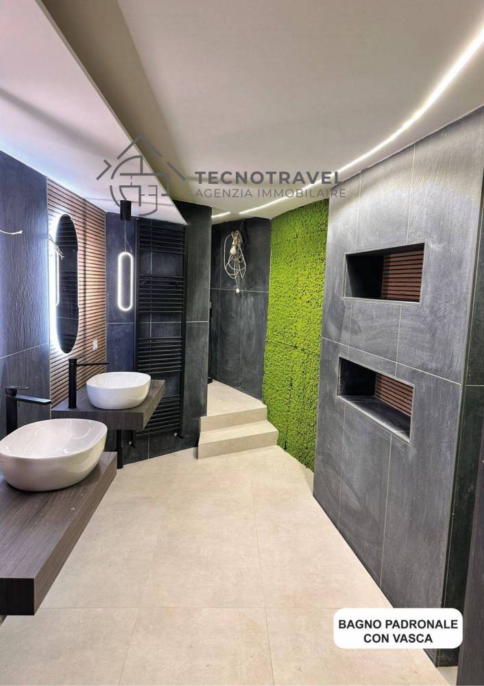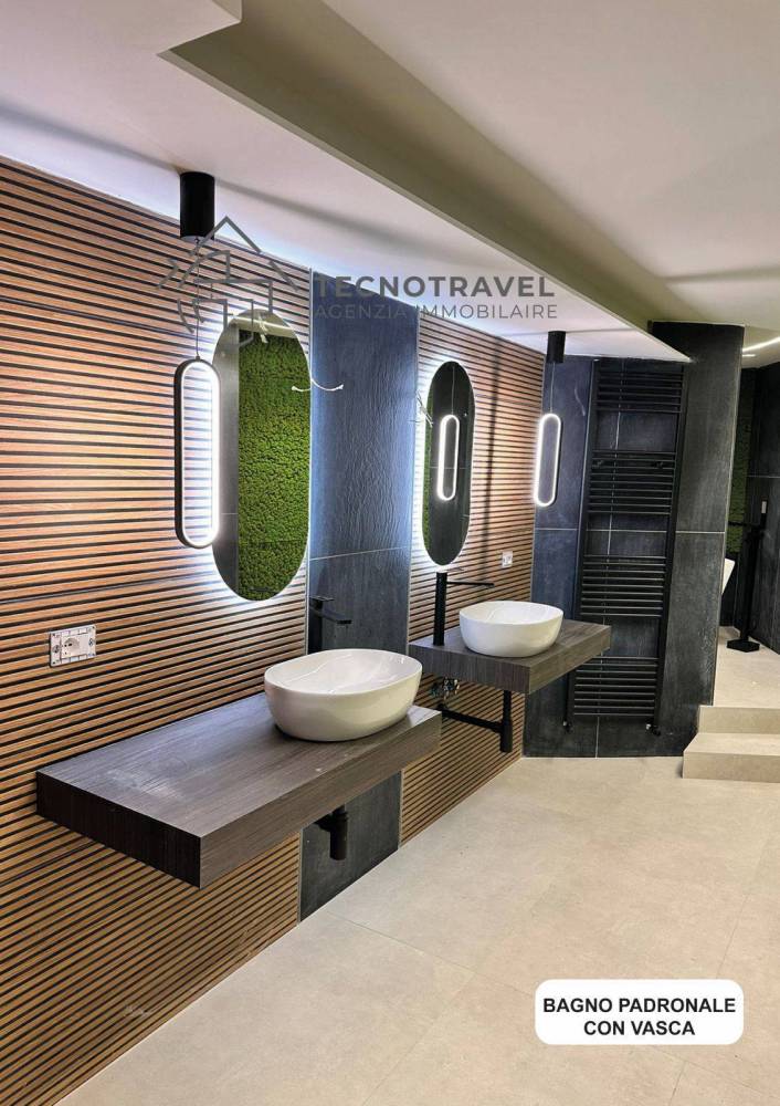 - Piano inferiore: camera matrimoniale con cabina armadio, cameretta e bagno di servizio con doccia