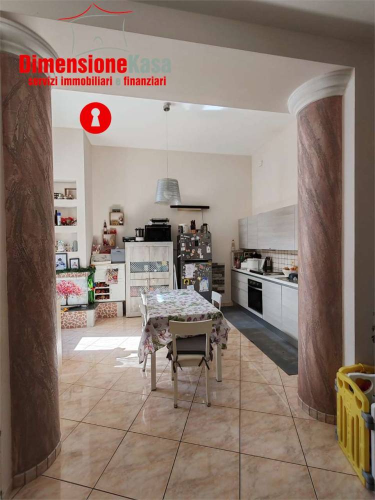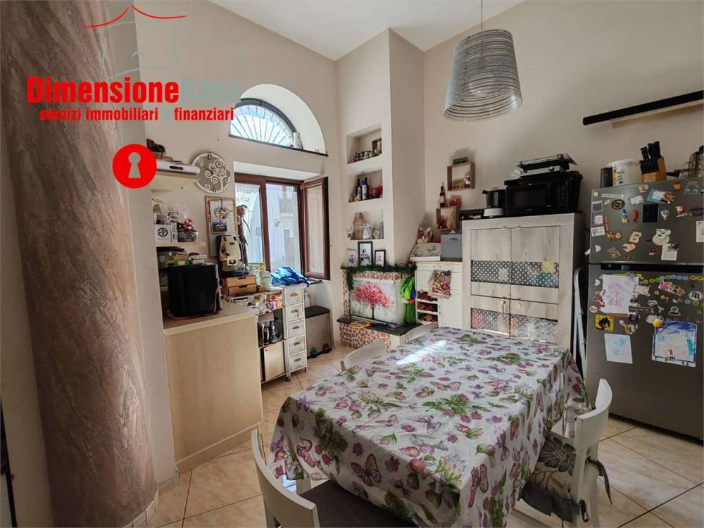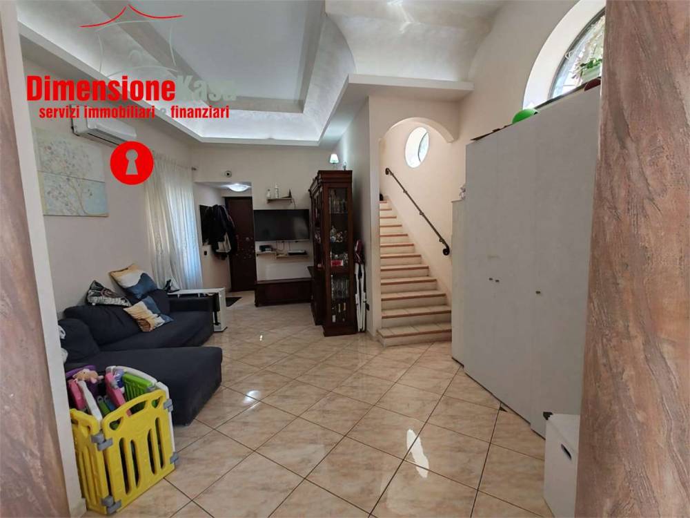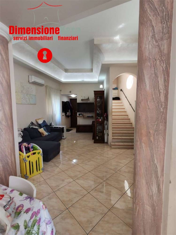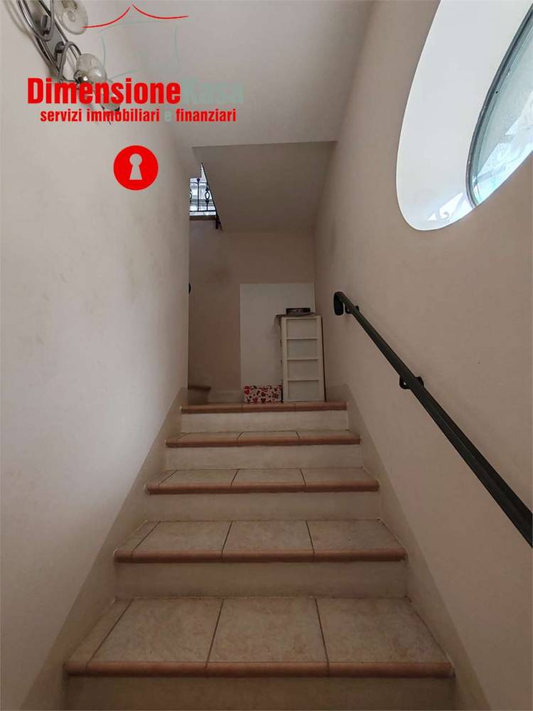 Ingresso in salone, cucina abitabile, bagno e scala interna di collegamento al piano superiore.