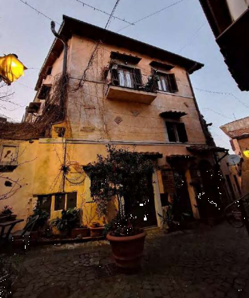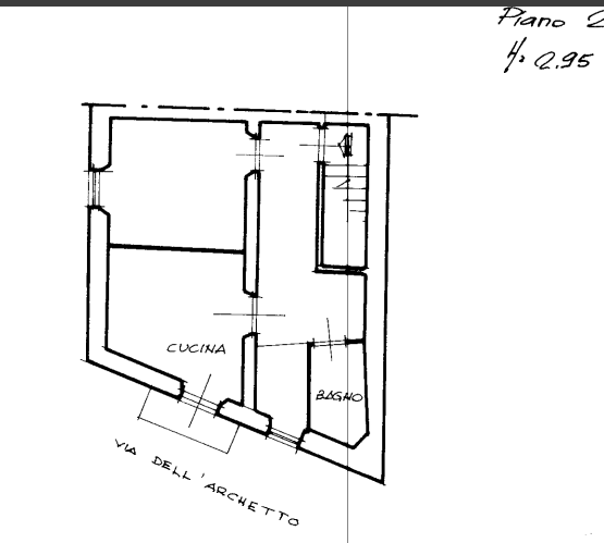 seguito si entra in un unico grande ambiente composto da cucina e soggiorno/pranzo, il tutto illuminato da una finestra e un porta finestra con un balconcino che affaccia su Via dell'Archetto. Un corridoio porta ad un ripostiglio e un bagno. Nel corridoio è presente una scala che porta al piano