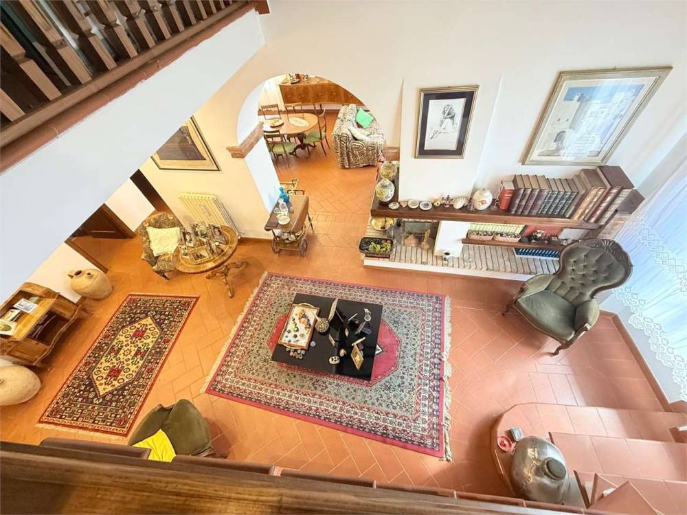 L'appartamento, della superficie di circa 280 mq, è composto da un ingresso al piano terra che conduce al piano primo suddiviso in salone con camino, ampia sala da pranzo, cucina abitabile con secondo camino, 2 camere da letto matrimoniali entrambe con bagno privato en suite, lavanderia e bagno.