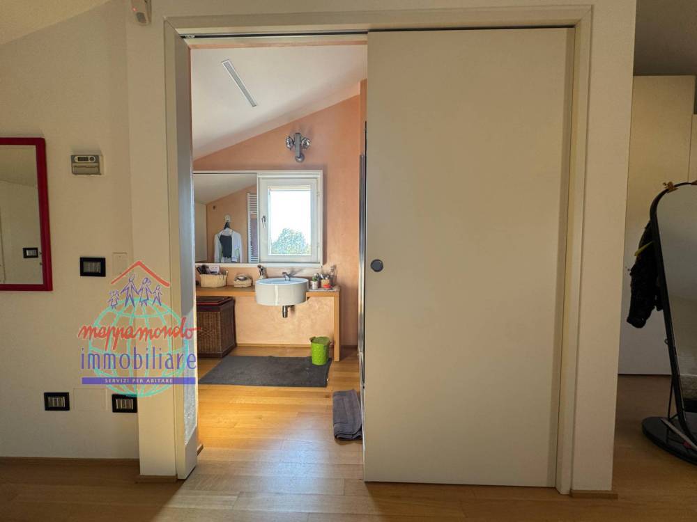 Piano Mansarda : ampia camera matrimoniale, bagno con doccia, ambiente guardaroba e ripostiglio sotto-tetto.
