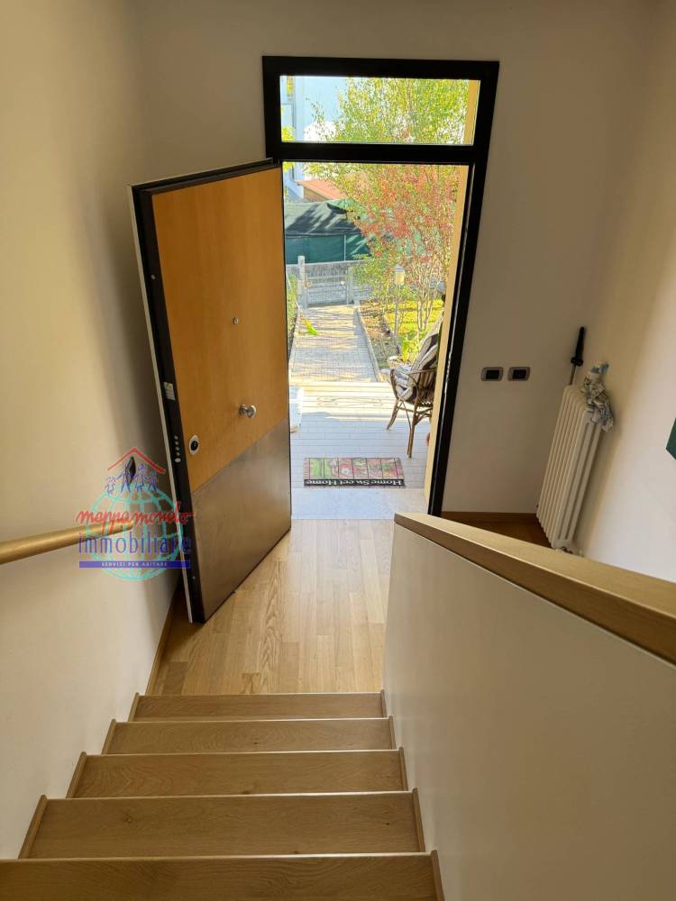 FINITURE: VILLA RISTRUTTURATA CON MATERIALI DI ALTO PREGIO, pavimenti in parquet, porte bianche, gres effetto pietra, pavimenti in cotto tavernetta e scala, finestre in alluminio al piano secondo, infissi in legno con doppio-vetro in taverna ed al piano primo, scuri esterni in legno, cancelletti di sicurezza, zanzariere, termostato per la regolazione della temperatura installato in ogni piano, impianti di riscaldamento e raffrescamento suddivisi in ogni piano, tendoni parasole, impianto d'allarme perimetrale al secondo piano, tavernetta con stufa a pellet, video-citofono, citofono in ogni piano, giardino piantumato.