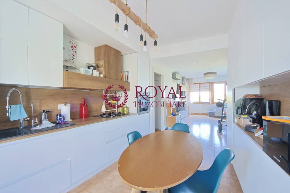 COTETO - RIF. RD6950 - In contesto moderno e molto ben tenuto, proponiamo luminosissimo appartamento posto al quarto piano con ascensore e composto da: Ingresso in zona living suddivisa in salone con terrazzo simiabitabile con affaccio ad ovest e cucina abitabile, dotata di tutti i confort, arredata ed equipaggiata e servita da comodo pratico balcone verandato adibito a zona lavanderia. Una comoda porta a scomparsa divide la zona giorno dalla zona notte, dove troviamo le tre camere, di cui una matrimoniale, una media ed una singola e i due bagni.