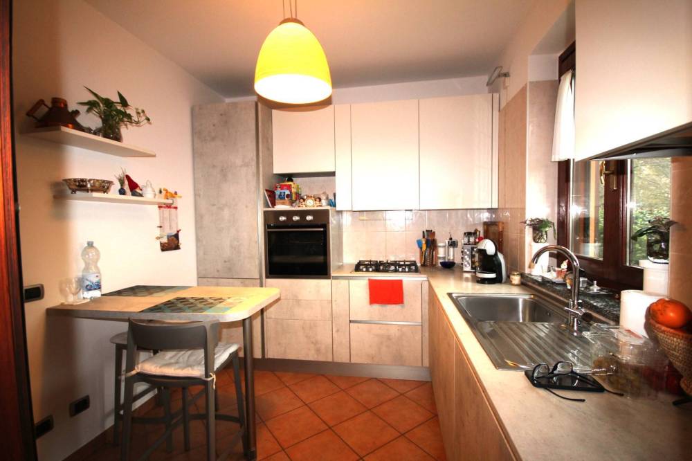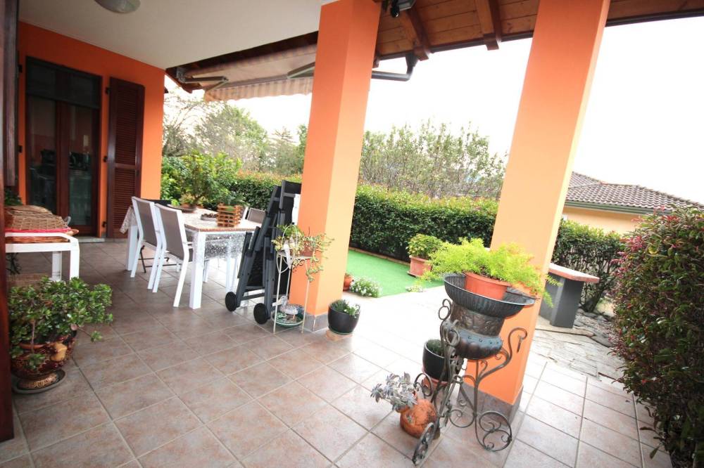 Al piano terra si trova la zona giorno che dispone di un ampio soggiorno con accesso diretto sia al giardino che al porticato coperto; anche la spaziosa e luminosa cucina, completamente arredata ed equipaggiata, ha accesso diretto al porticato di circa 16 mq. dove poter mangiare; bagno con doccia e lavanderia.
