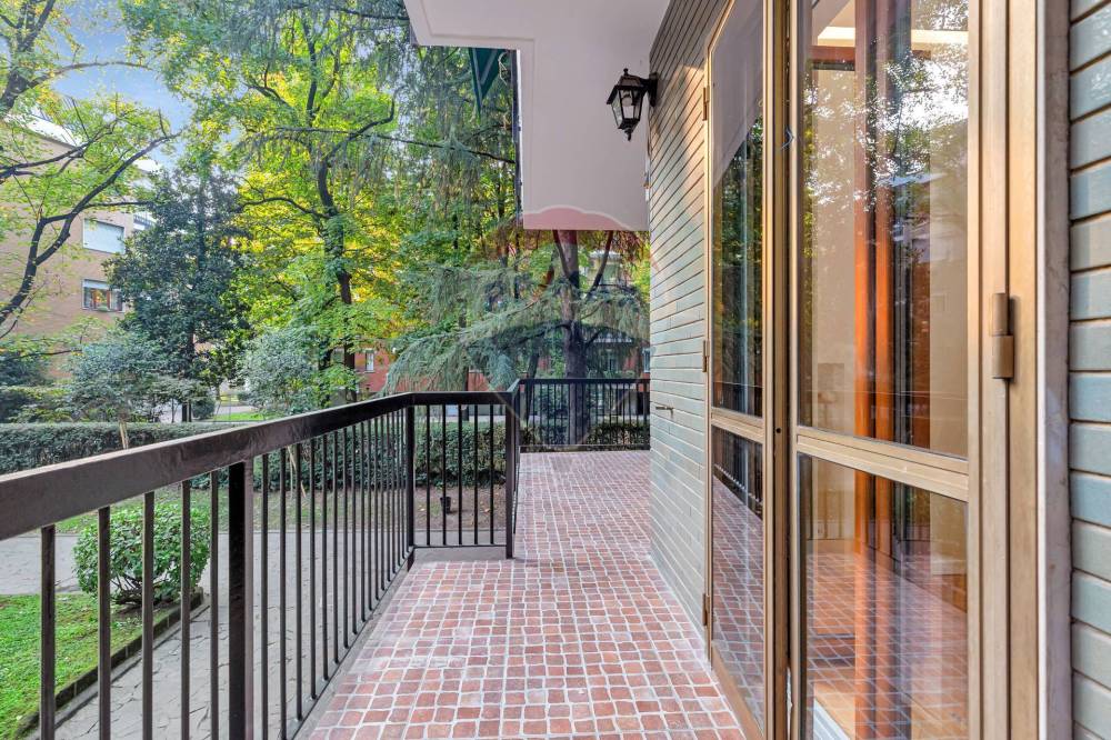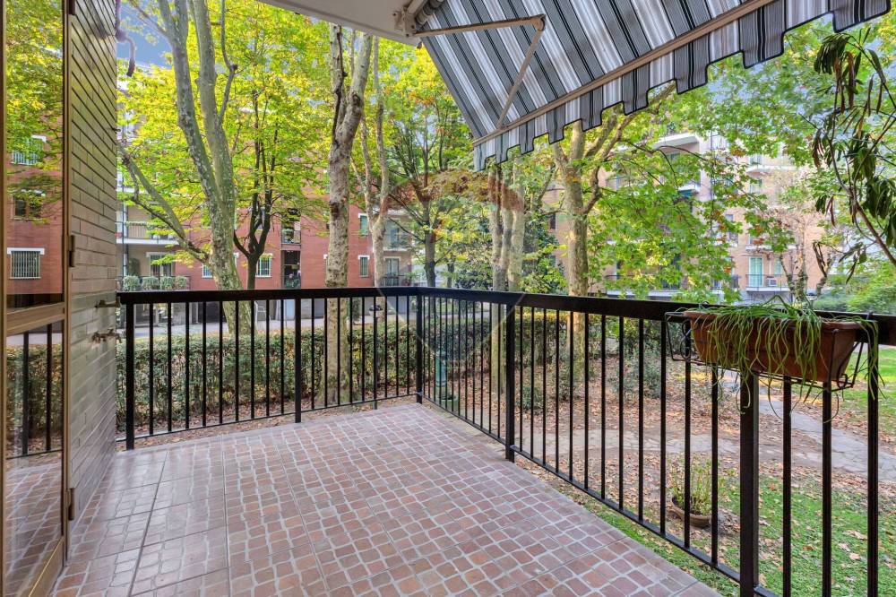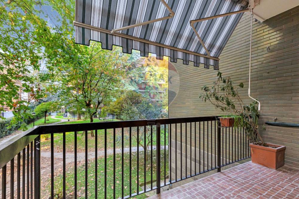Idue balconi arredabili, affacciati sul giardino interno dello stabile: perfetti per una colazione al sole o un aperitivo al tramonto.