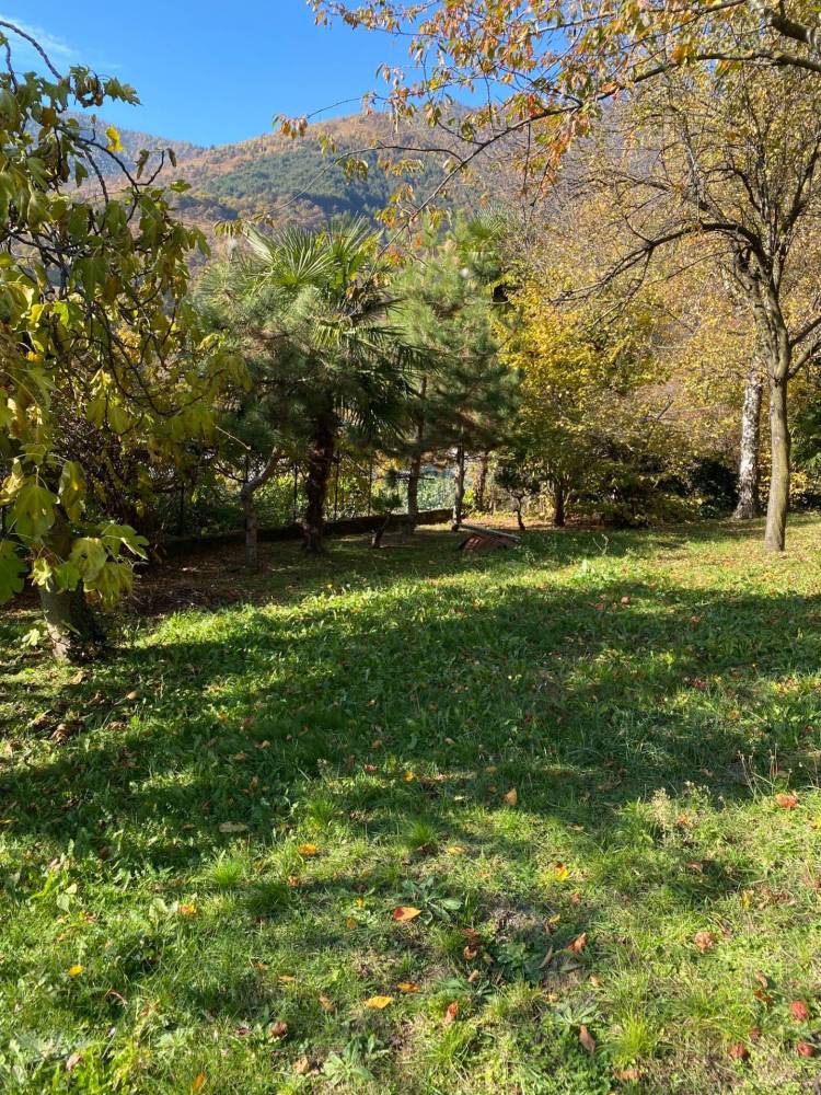 La casa è circondata da 750 mq di terreno comune adibito a prato e/o giardino, piantumato anche con alberi da frutta.