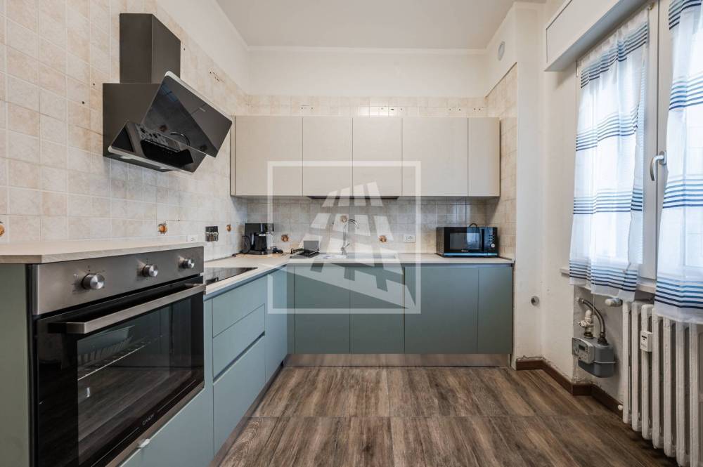 L'appartamento è valorizzato da una particolare luminosità presente grazie alla sua esposizione su tre lati ed è composto da ingresso, soggiorno, cucina abitabile e zona notte che comprende due camere da letto matrimoniali, una particolarmente spaziosa e servita da balcone e bagno finestrato completo di box doccia.