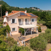 Sulla primissima collina di Noli, a pochi minuti dal mare cristallino di questa rinomata località, bellissima villa in vendita con giardino privato e spettacolare vista mare.
