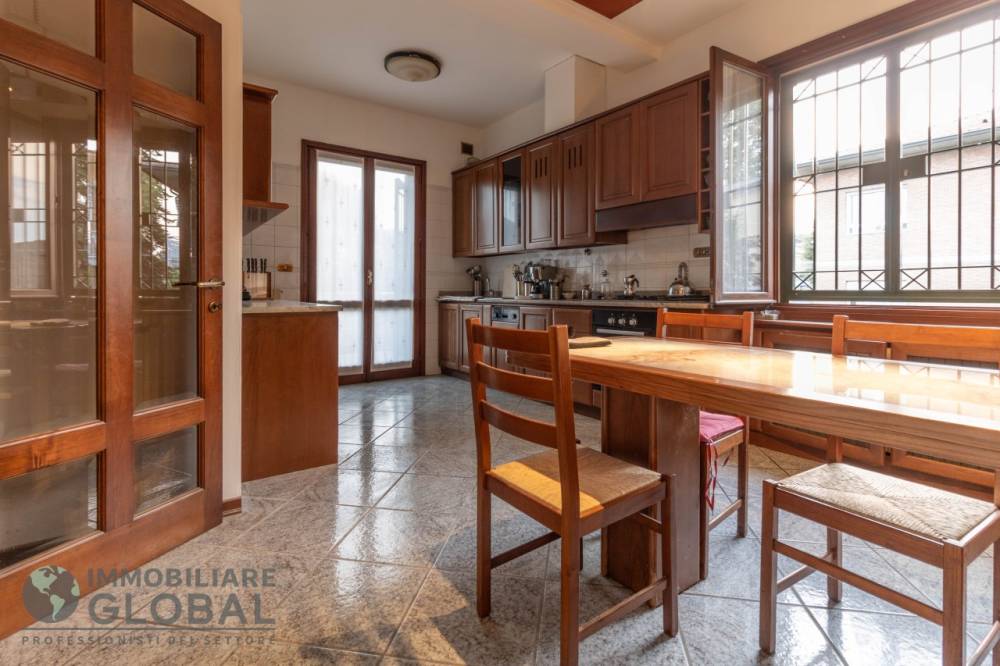 La cucina abitabile, separata dal soggiorno, è spaziosa e anch’essa servita da secondo terrazzino, ideale per chi ama cucinare con luce naturale e comodi sbocchi esterni.