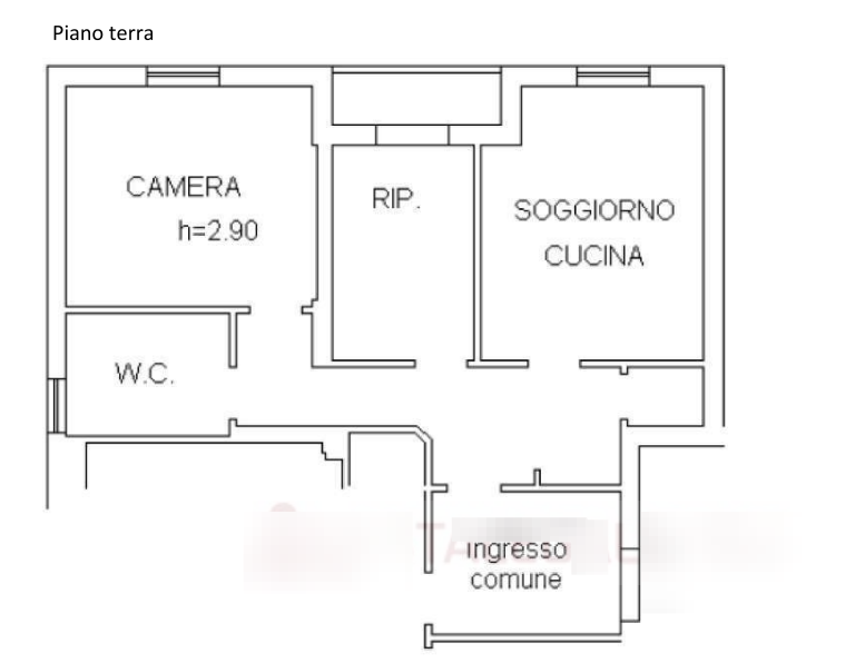 L'immobile posto al piano terra, composto da: camera, soggiorno-cucina,wc, ingresso,due ripostigli ed un balcone.