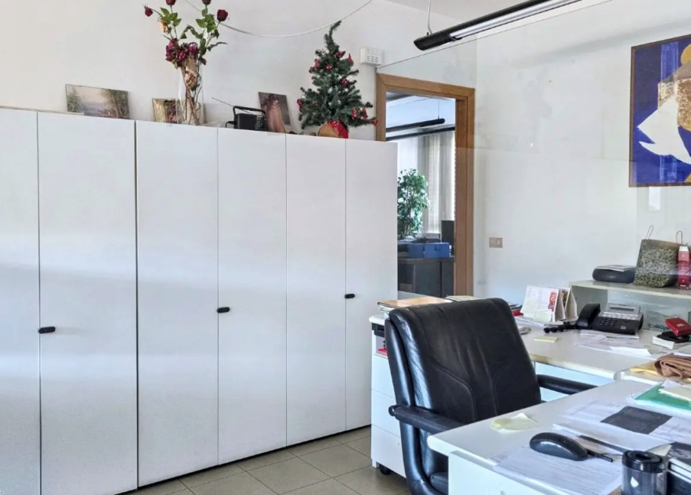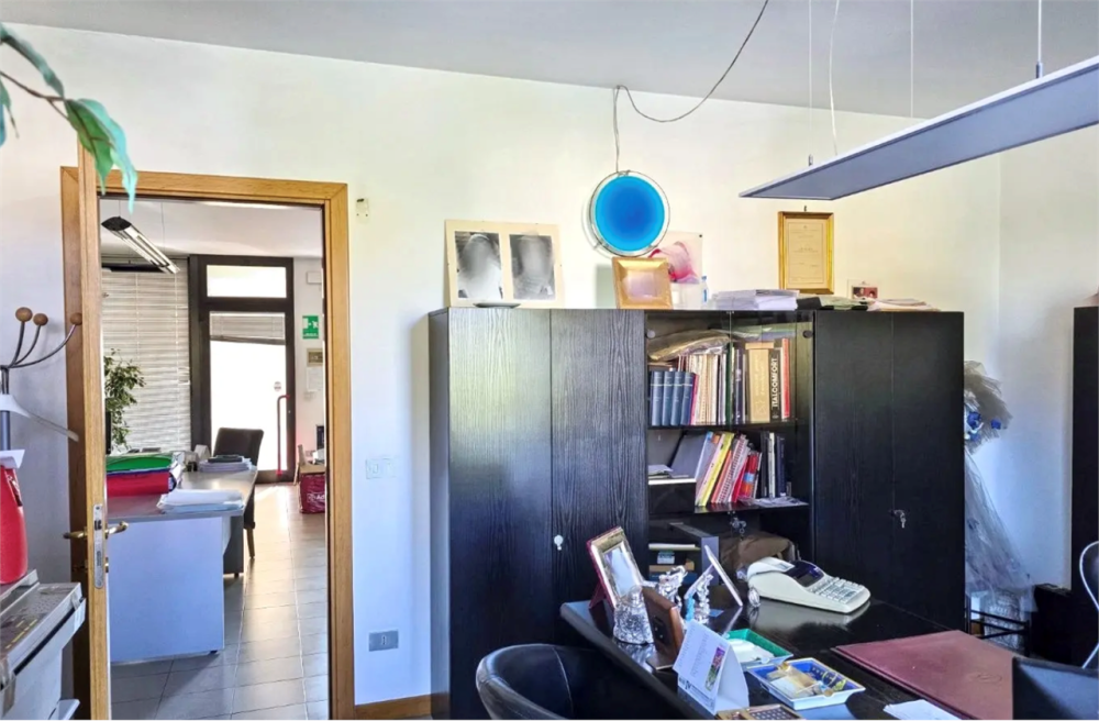 Ufficio al primo piano con annesso garage situato ad Arzignano (VI), in via Asilo Bonazzi, composto da un ampio vano, ingresso separato da pareti in vetro da rimuovere, due ulteriori vani uffici, antibagno con bagno.