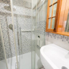 Un bagno recentemente ristrutturato, moderno nelle linee e nei materiali