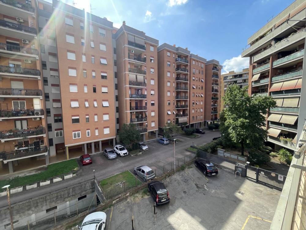 vendiamo un appartamento a Roma in zona Cinecittà e più precisamente in Via Libero Leonardi in stabile signorile in tinta e cortina di otto piani proponiamo un terzo piano con affaccio tutto esterno esposto a sud sul giardino condominiale composto da un ingresso con soggiorno a vista e cucina arredata 1 camera matrimoniale e 2 camere singole doppi servizi con sanitari sospesi di cui uno cieco con areazione forzata 2 armadi a muro balconato con tende da sole porta blindata e posto auto scoperto Appartamento ristrutturato, climatizzato, serramenti motorizzati. Euro 298.000