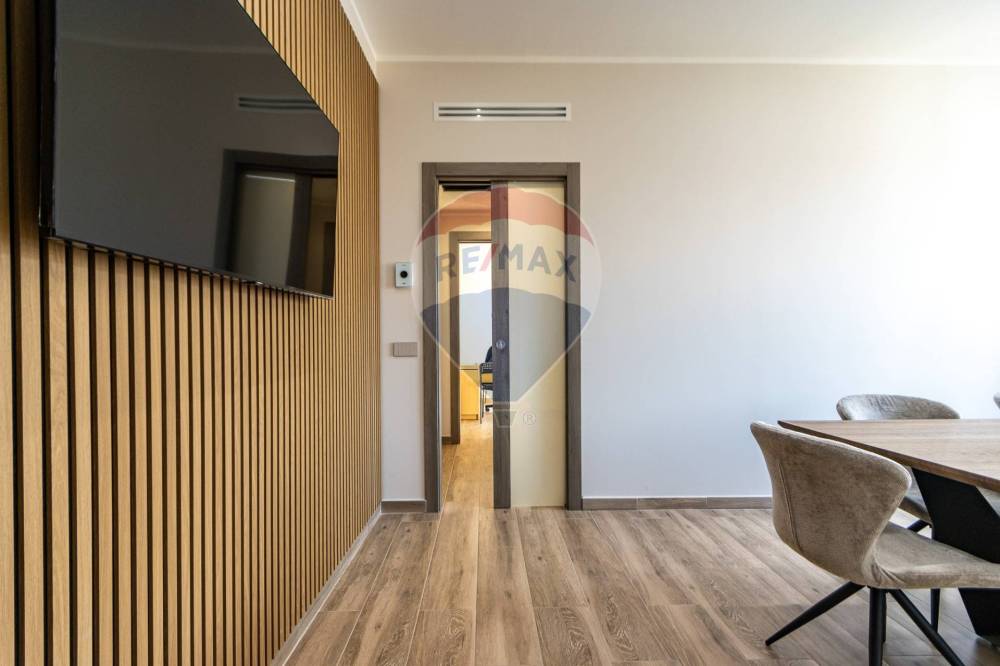 L'ingresso si apre direttamente su un luminoso soggiorno con angolo cottura, uno spazio versatile e accogliente, ideale per trascorrere momenti di relax o cene informali. Adiacente al soggiorno, un disimpegno conduce alla zona notte, composta da una camera da letto spaziosa e ben illuminata. Il bagno, funzionale e moderno, è completo di tutte le dotazioni necessarie.