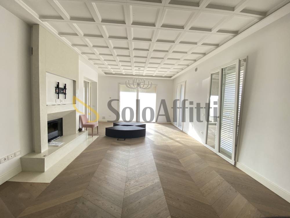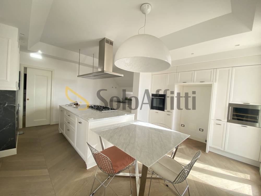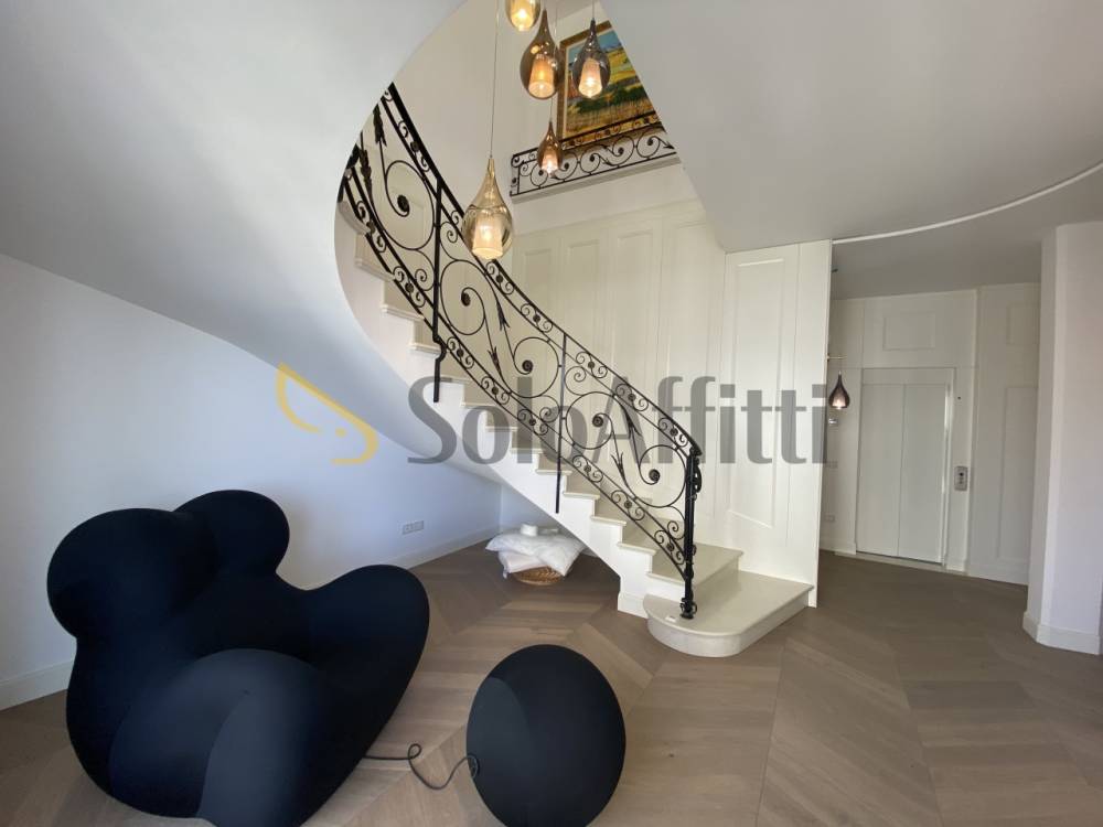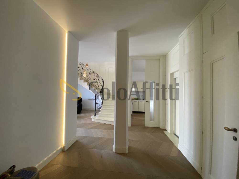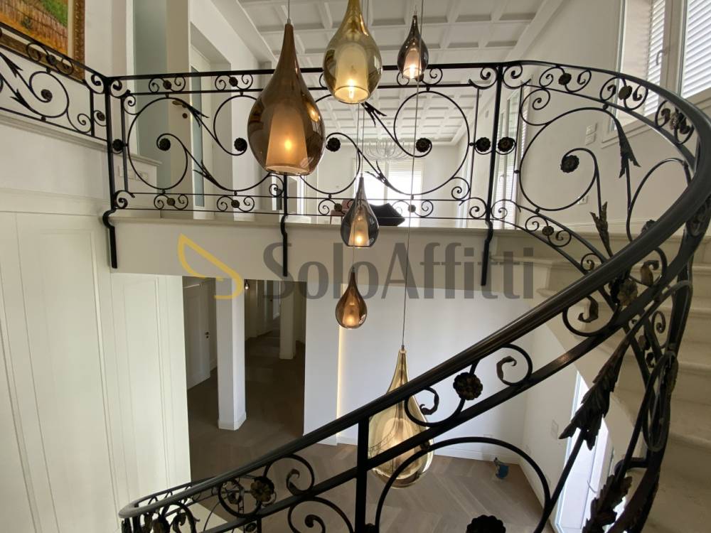 In una delle zone residenziali più ricercate di Rimini, vi presentiamo in affitto un appartamento unico nel suo genere, all’interno di una raffinata villetta bifamiliare. Con i suoi 280 mq distribuiti su tre livelli, questa residenza è molto più di una semplice casa: è un luogo dove l’architettura incontra l’emozione. Varcando il cancello, si viene accolti da un portico verandato di 60 mq. Da qui un comodo ascensore privato ti accompagna direttamente al secondo piano, dove prende vita la zona notte: Tre camere da letto dallo stile sobrio e rilassante Una cabina armadio spaziosa, pensata per chi ama prendersi cura di sé Un salottino privato con poltrona di design e accesso al balcone Un pratico angolo colazione con zona lavanderia Due bagni moderni, uno con doccia, l’altro con una splendida vasca, doccia e finiture in marmo che regalano un’atmosfera da spa privata Dal salottino, una scenografica scala, illuminata da un lampadario a gocce di vetro alto più di 3 metri, conduce al terzo ed ultimo piano dove si trova la vera anima della casa. Qui si apre un salone luminoso con camino bifacciale, perfetto per serate in compagnia o momenti di pura intimità. Una cucina moderna con isola centrale e tavolo conviviale completano la zona giorno. A servizio del piano, un ulteriore bagno di design ed infine, un ampio terrazzo di 100 mq, dove il cielo di Rimini sembra ancora più vicino. Ogni dettaglio è stato pensato per offrire massimo comfort e sostenibilità: -Parquet in tutta la casa -Riscaldamento a pavimento -Illuminazione a LED a basso consumo -Serrande elettriche -Infissi vetrocamera con isolamento acustico -Predisposizione aria condizionata -Antifurto -Pannelli solari per l’acqua calda -Addolcitore -Termo cappotto -Portone blindato -Posto auto di pertinenza Il canone di locazione mensile richiesto è pari ad € 2.500. Contratto anni 4+4. Richiesta fideiussione bancaria di 6 mesi e redditi documentabili