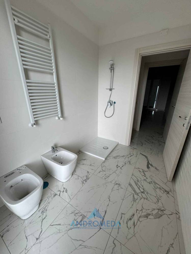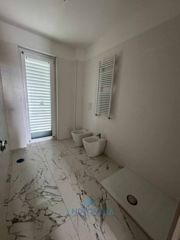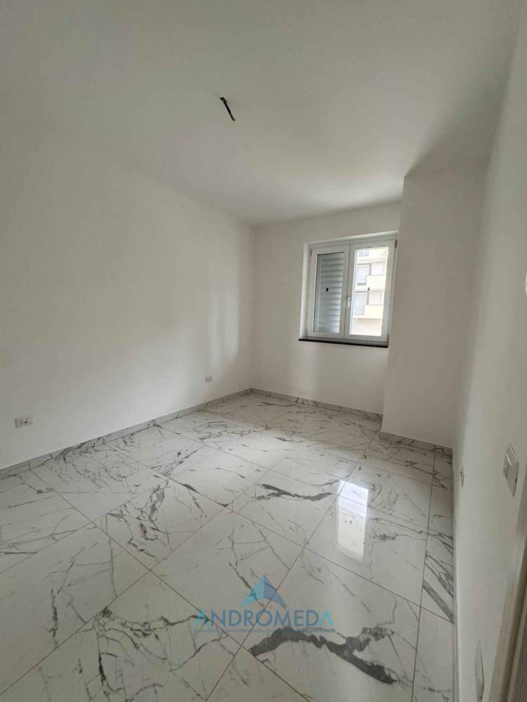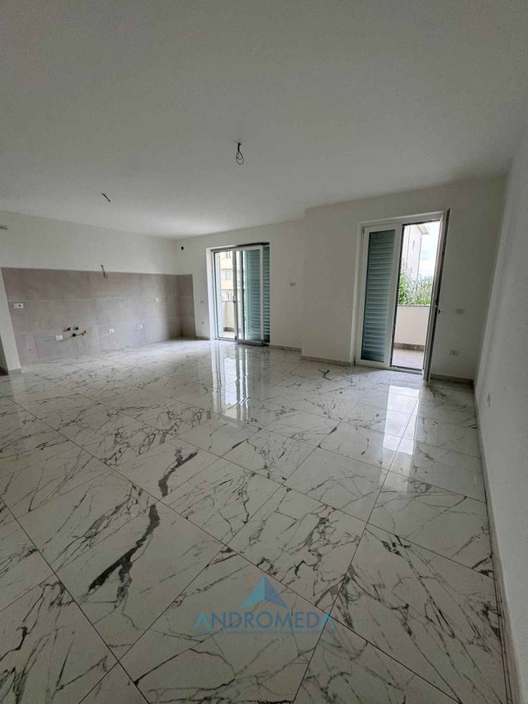 L'appartamento si compone di: ampio salone living con cucina a vista, due camere da letto, di cui una con bagno privato, un ulteriore bagno di servizio e un ampio ripostiglio/lavanderia.