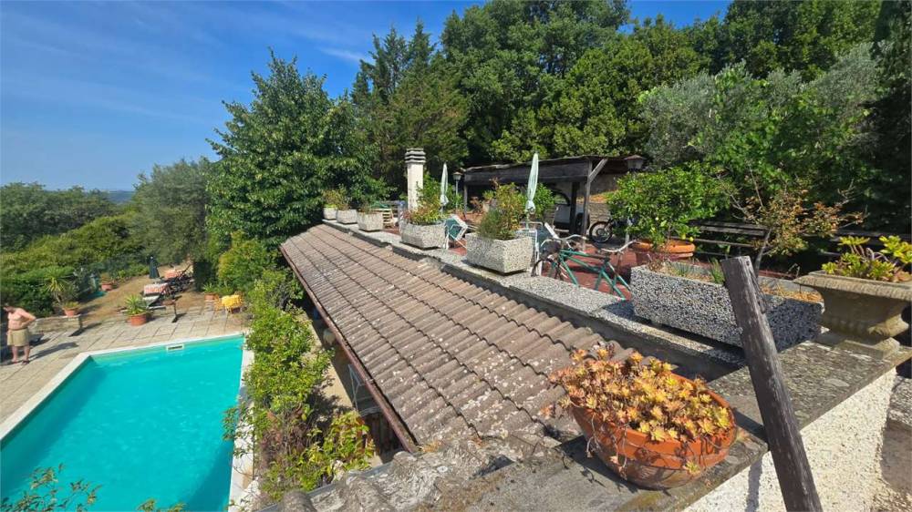Proprietà con circa cinque ettari con possibilità di estensione fino a otto ettari con parte edificabile. Sono in essere essendo azienda agraria le PAC. I terreni con oliveti, frutti, seminativo e Bosco.