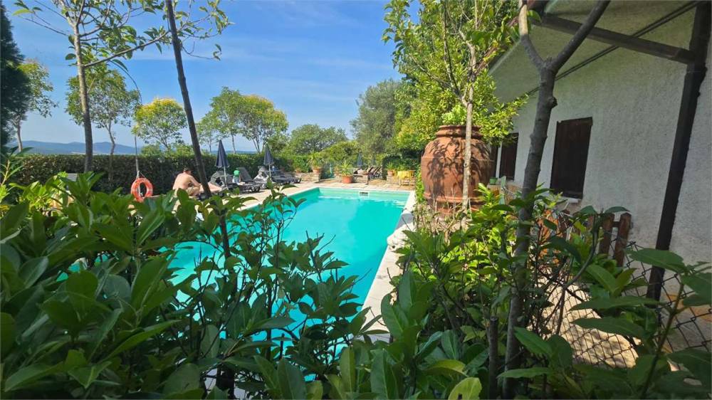 La proprietà si compone di tre unità immobiliari, due piscine, ed è immersa in un paesaggio suggestivo tra uliveti, querce e boschi.