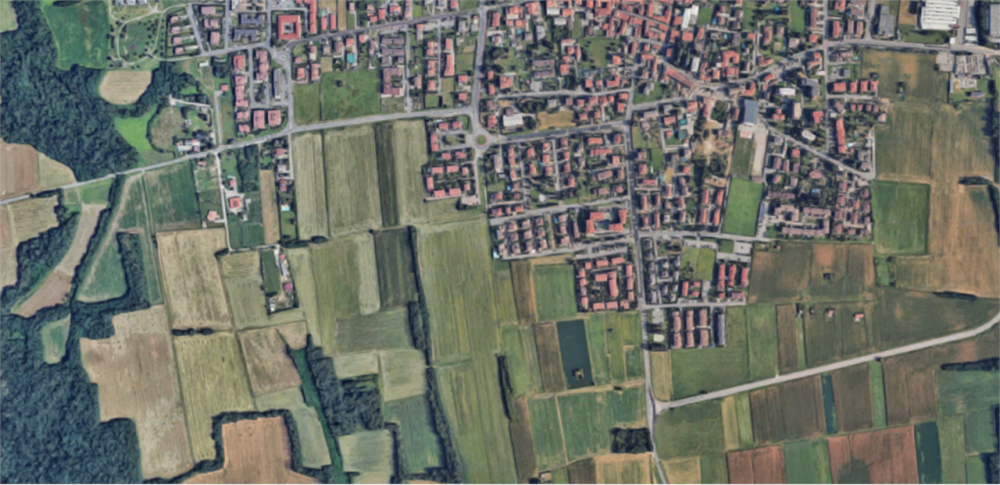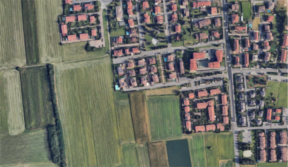 Il terreno si trova a Roncello (MB) in via Antonio Gramsci. Il terreno, di tipo agricolo di qualità seminativo, pianeggiante di forma rettangolare allungata senza recinzioni ha una superficie di 5.742 mq.