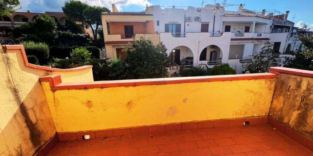 Piano superiore (zona notte): due camere matrimoniali, una cameretta, secondo bagno e due balconi panoramici con splendida vista sul mare e sulle montagne circostanti.
