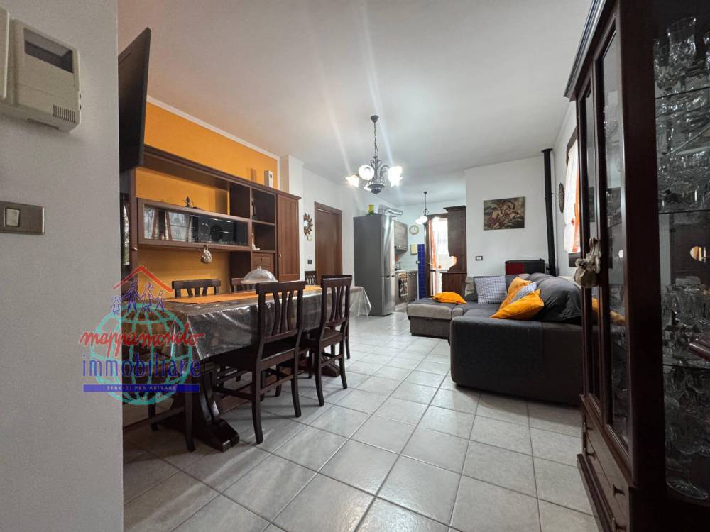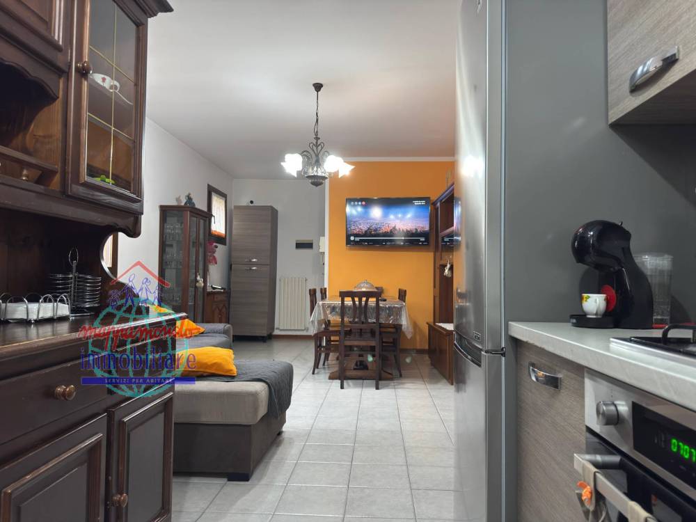 Ingresso su soggiorno con angolo cottura e balcone coperto