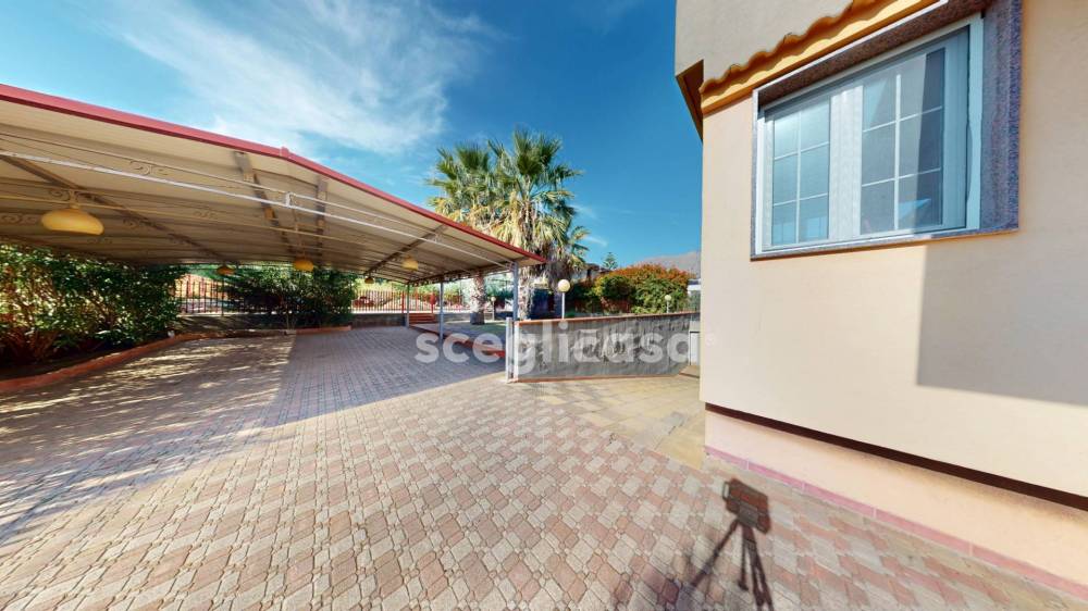 Internamente al piano terra troviamo un ingresso su soggiorno, tre camere da letto, ripostiglio, due bagni, una cucina abitabile e un terrazzo coperto.