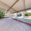 A completare la proprietà un ampio giardino e una copertura per parcheggiare le auto.