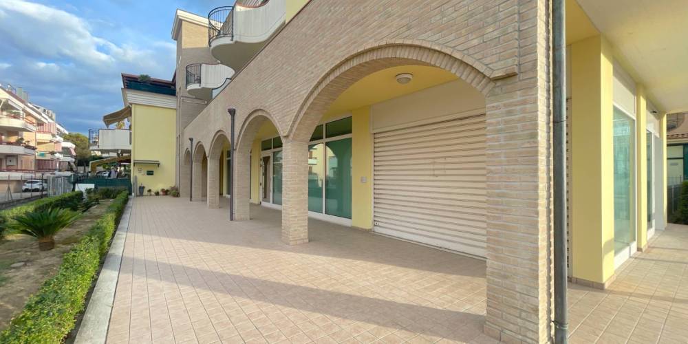 Ampio locale commerciale di circa 170 m², situato al piano terra e caratterizzato da una posizione dangolo estremamente visibile lungo la Strada Statale Salaria.