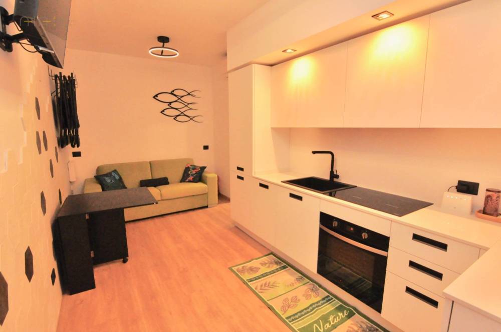 Grazioso appartamento vicinissimo al mare di circa 40 mq con ingresso indipendente, ubicato al piano terra di una piccola palazzina. La proprietà è composta da ingresso/soggiorno con angolo cottura, disimpegno (con armadio), bagno con doccia, camera matrimoniale. Il Giardino esterno di circa 60 mq è dotato di gazebo in legno, cucina con annessa area pranzo, zona relax, doccia e posto auto privato.