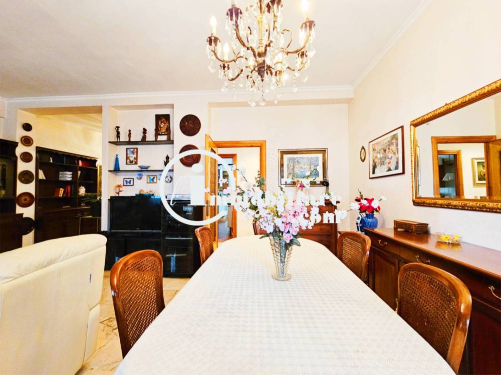 The internal surface measures approximately 120 square meters and consists of: a large entrance hall, a double living room with a 40 sqm terrace, three bedrooms (one with an en-suite bathroom and balcony), and a fully equipped eat-in kitchen with a balcony. The apartment is in good condition and very bright, featuring triple exposure to the South, East, and West.