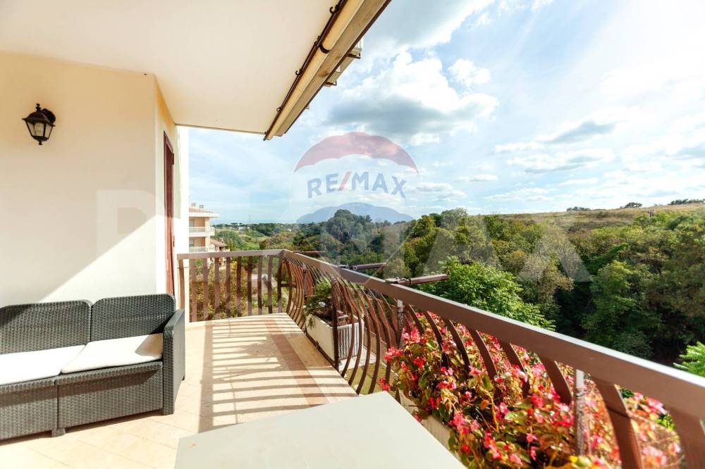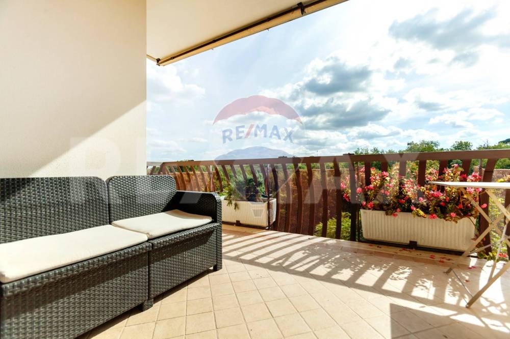 Da qui si accede a un grande balcone panoramico, affacciato sul verde del consorzio: lo spazio perfetto per leggere, pranzare allaperto o semplicemente rilassarsi a fine giornata.