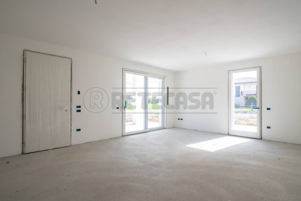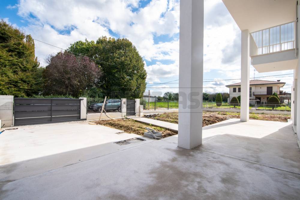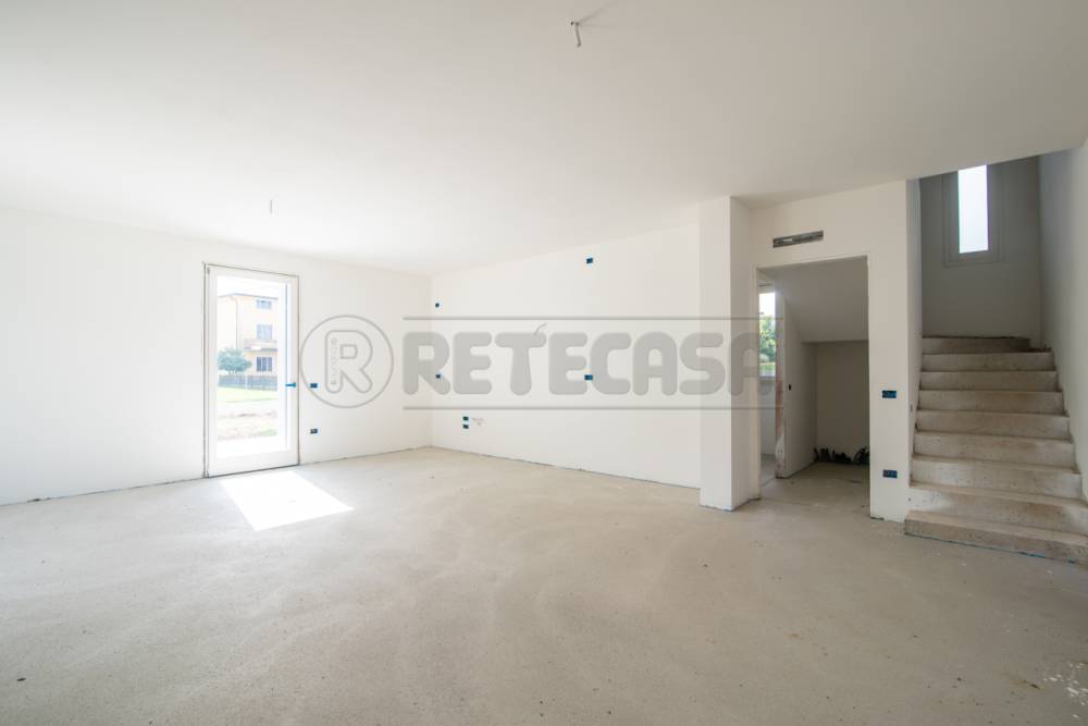 SANTA GIUSTINA IN COLLE Proponiamo in esclusiva villetta a schiera di nuova costruzione, parte di un piccolo complesso di sole 3 unità, collegate tra loro solo dal garage. Ogni abitazione gode di ingresso indipendente, ampio giardino privato e ottima esposizione. Al piano terra si trova un’ampia zona giorno open-space di circa 40 mq con angolo cottura, disimpegno, lavanderia, bagno finestrato, garage comunicante, portico e pompeiana esterna ideale per pranzi all’aperto. Al piano primo due camere matrimoniali, ciascuna con spazio esterno dedicato: loggia per la più piccola e poggiolo per la principale, oltre a un secondo bagno di circa 9 mq. Sullo stesso livello troviamo un sottotetto praticabile che può essere utilizzato come terza camera o studio. Finiture personalizzabili da ampio capitolato: riscaldamento a pavimento con pompa di calore, impianto fotovoltaico, ventilazione meccanica, serramenti in legno bianco con triplo vetro, scuri in legno, pavimenti in gres o legno a scelta, aria condizionata e cappotto termico da 14 cm per alte prestazioni energetiche. Soluzione ideale per chi cerca comfort moderno, indipendenza e qualità costruttiva in un contesto tranquillo ma comodo ai servizi. Classe energetica A4-22,10 kWh/mqanno. Prezzo richiesto Euro 389.000 RIF. KTX306