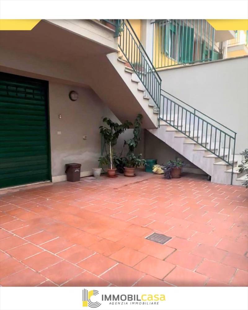 Dal cancello d'ingresso, attraverso un cortile di circa 30 mq si accede al garage di 48 mq e ad un giardino retrostrande di circa 50 mq. Da una scala presente sempre nel cortile d'ingresso si accede al primo piano dove troviamo il soggiorno, la cucina e il primo bagno. Al secondo piano trovano spazio le tre camere da letto, tutte con finestra, e il secondo bagno. Al terzo piano, invece, trova spazio la mansarda composta da due piccole stanze e il terzo bagno. Completa il tutto un terrazzo di circa 30 mq collocato sempre al terzo piano.