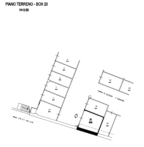 Trattasi di un box di superficie mq 22,00 facente parte del fabbricato ad uso autorimessa in parte interrata, ha accesso da via Rezza tramite strada privata.