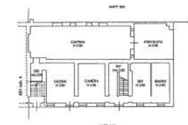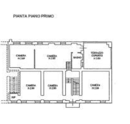 -Abitazione principale composta da 13,5 vani: Piano terra: cucina, due camere, ripostiglio, disimpegno, cantina e porticato; Piano primo: cinque camere, servizio igienico e terrazzo; Piano secondo: tre camere, un ripostiglio e un locale di sgombero.